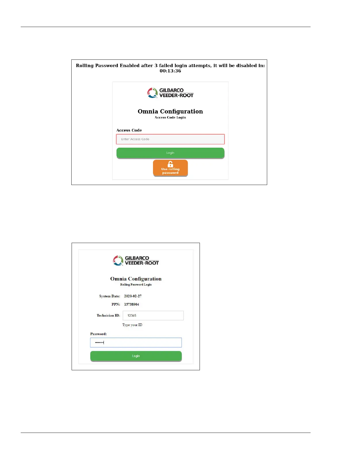 Note: Type your Technician ID. Password is provided by Gilbarco Help Desk through the