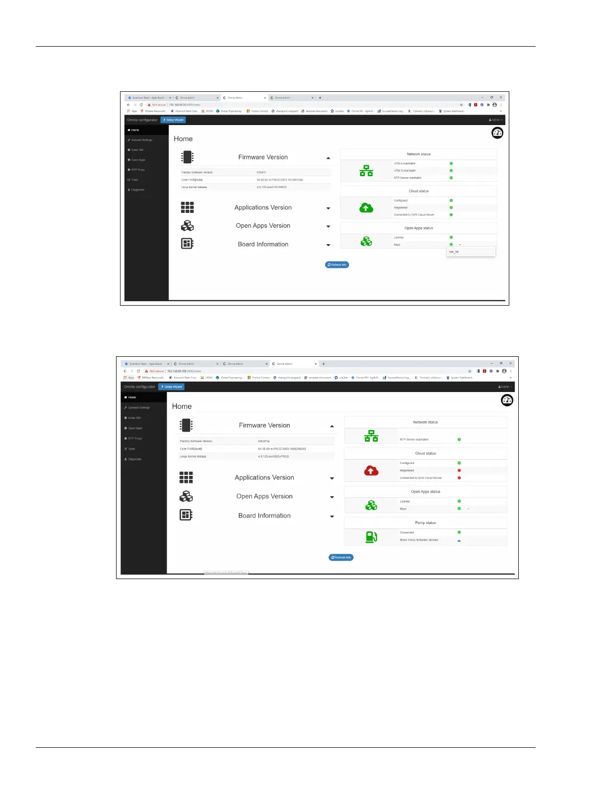 Note: Open Apps LED status and Pump LED status is displayed only in Encore Experience