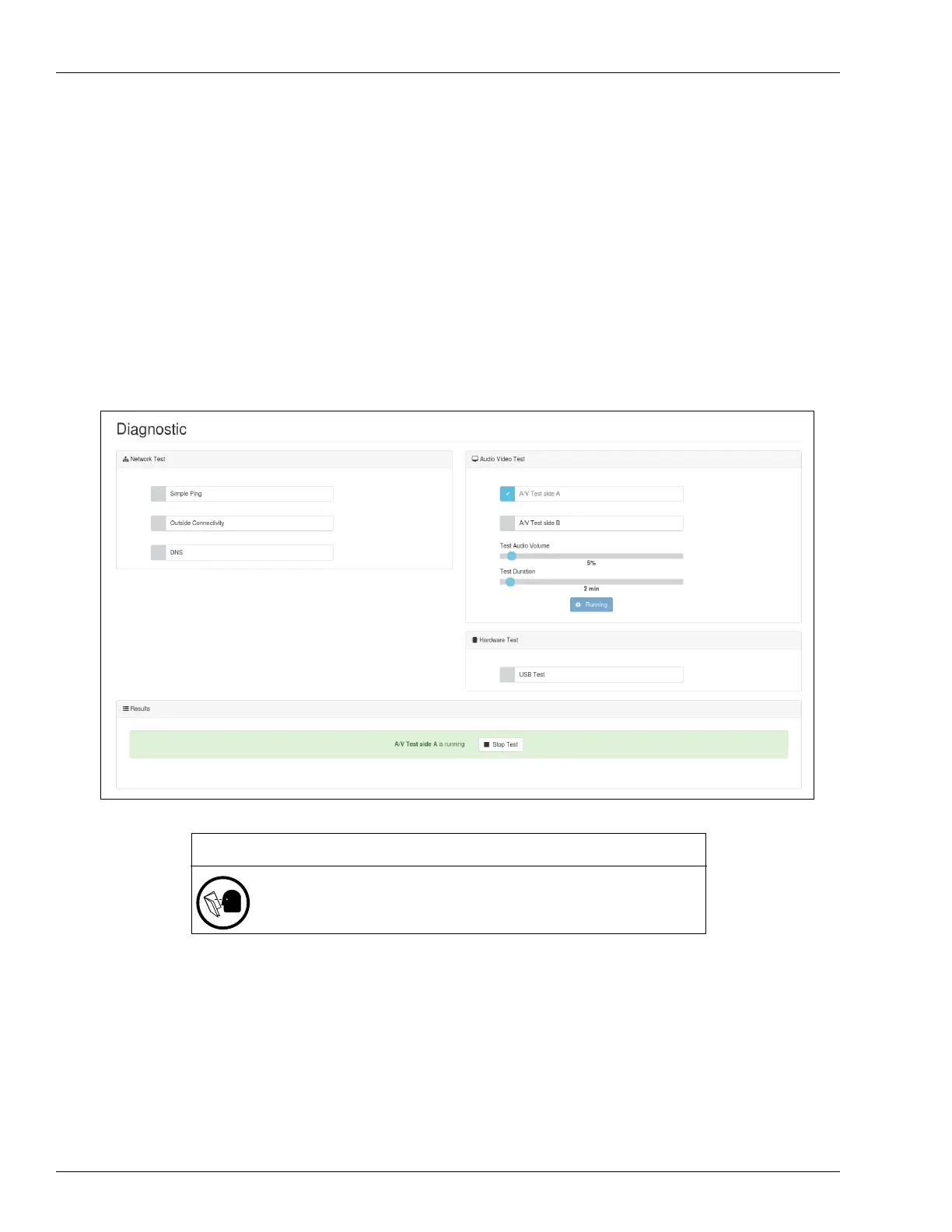 5 Check if the test is running in the Results sections and the sample audio/video is playing.