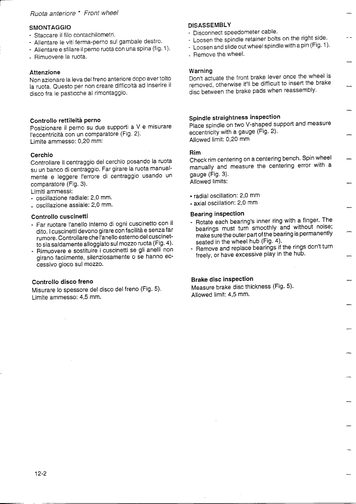 Gilera 350 - Spindle Straightness Inspection; Rim; Bearing Inspection; Brake Disc Inspection