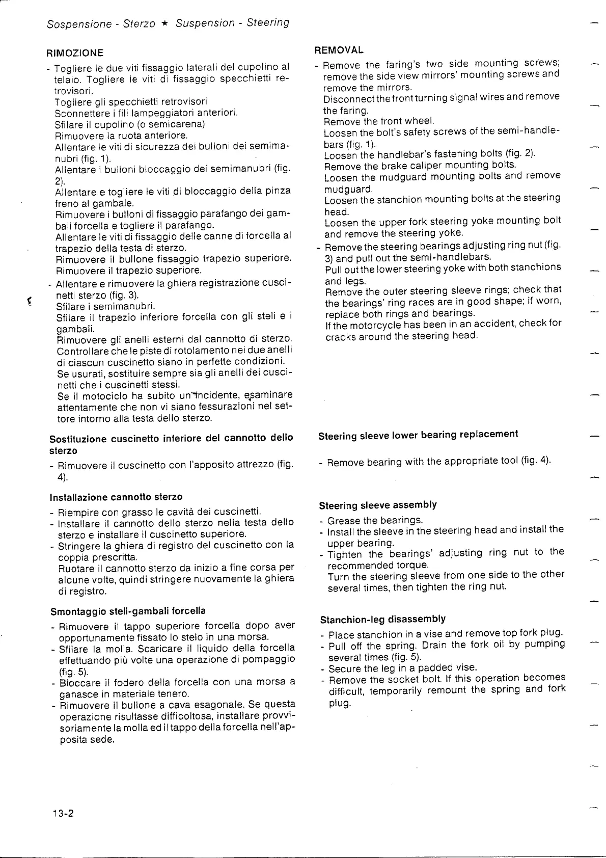 Gilera 350 - Steering Sleeve Lower Bearing Replacement; Steering Sleeve Assembly; Stanchion-Leg Disassembly