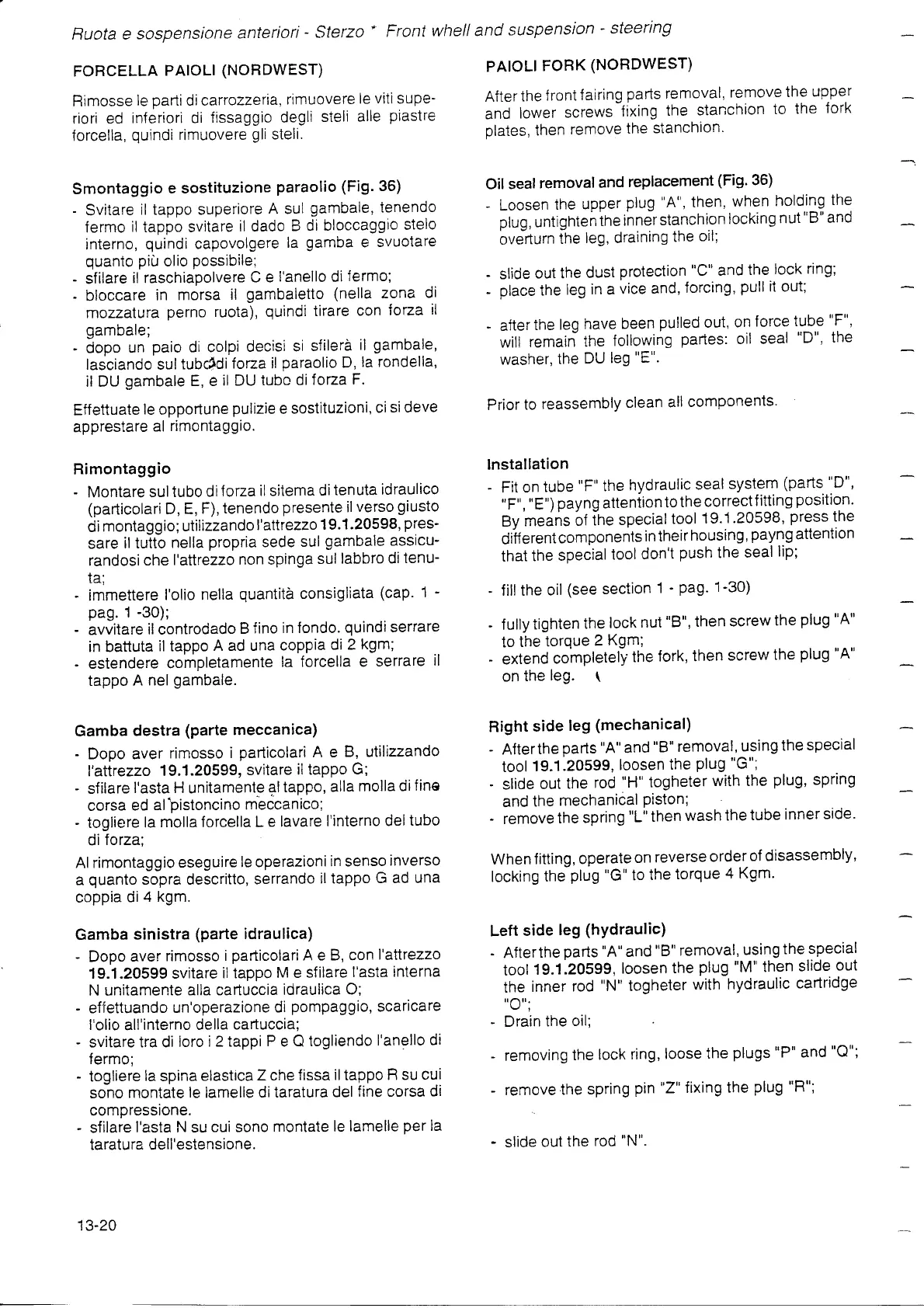 Gilera 350 - Paioli Fork; Oil Seal Removal and Replacement; Right Side Leg; Left Side Leg