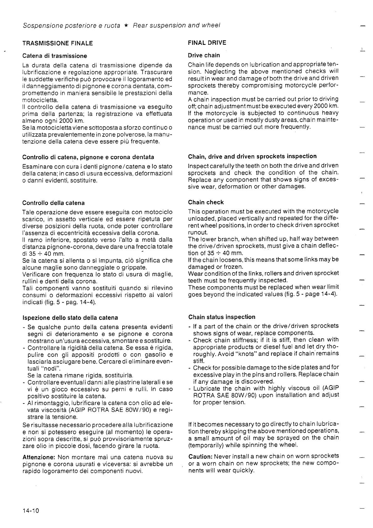 Gilera 350 - Final Drive; Chain, Drive and Driven Sprockets Inspection; Chain Check; Chain Status Inspection