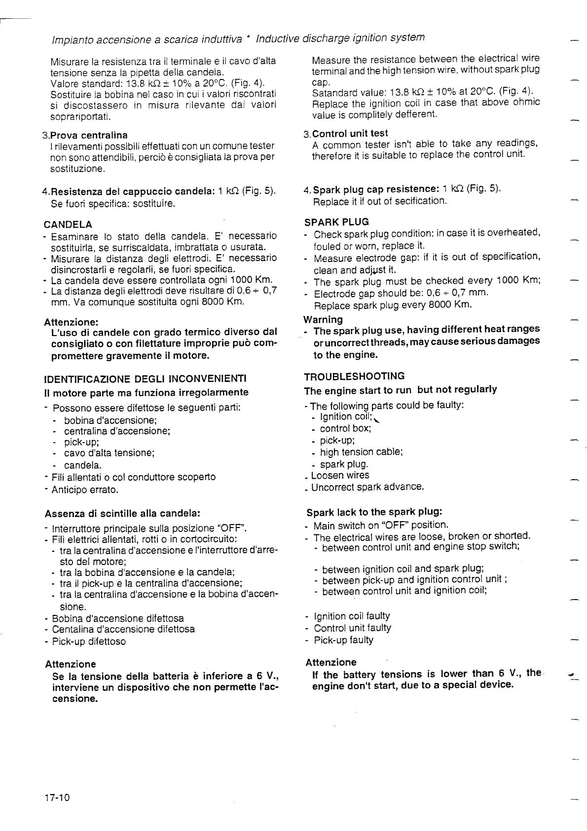 Gilera 350 - Control Unit Test; Spark Plug Cap Resistance
