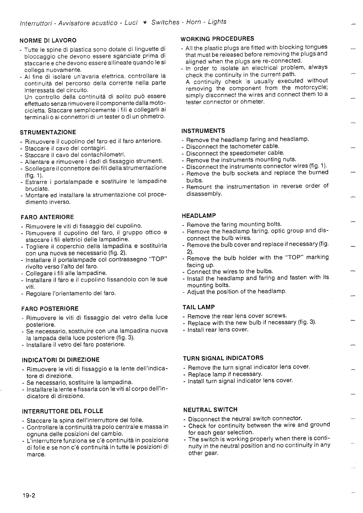 Gilera 350 - Instruments; Headlamp; Tail Lamp; Turn Signal Indicators