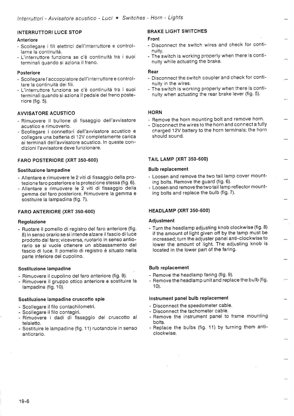 Gilera 350 - Brake Light Switches; Horn; Bulb Replacement; Instrument Panel Bulb Replacement