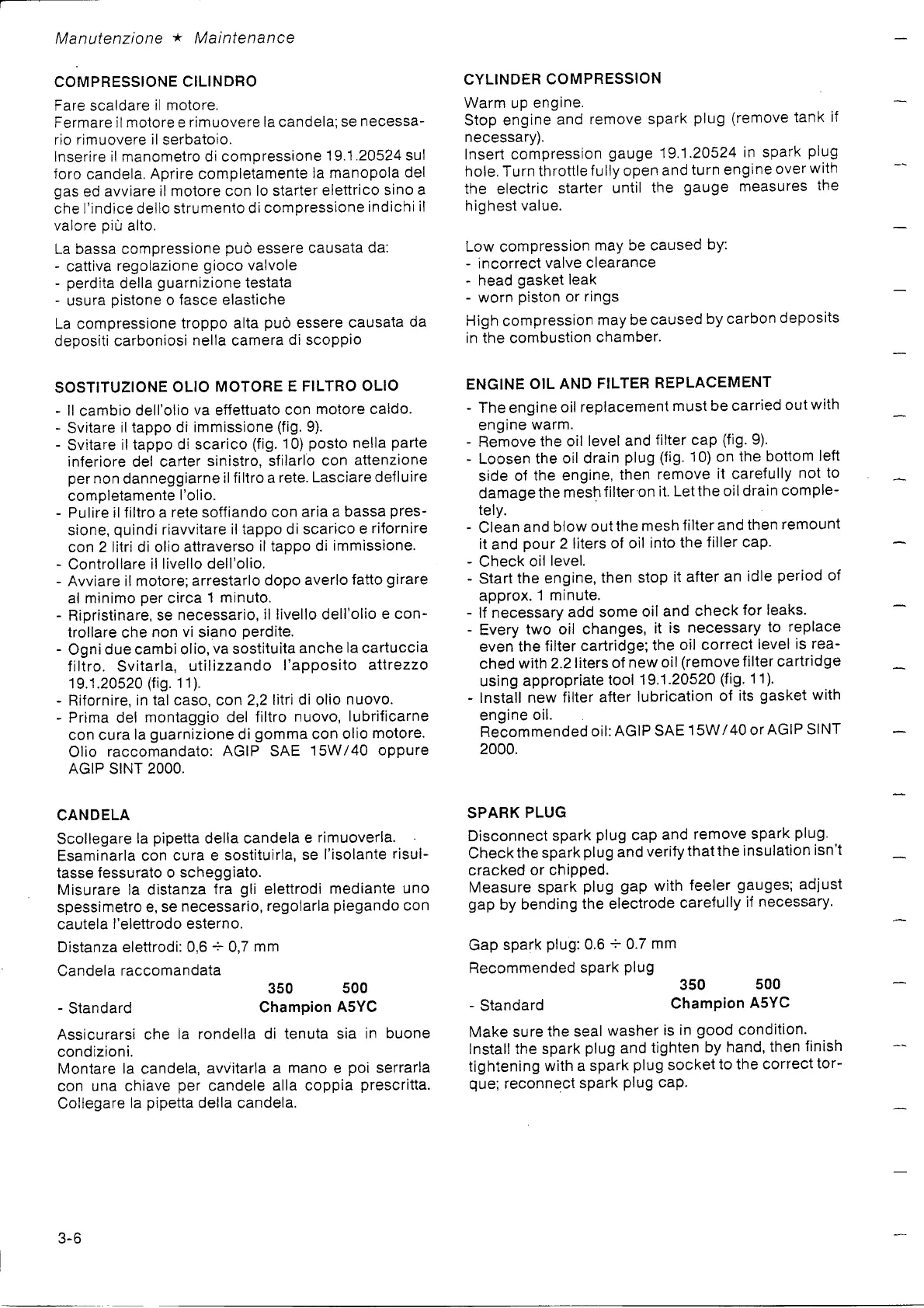 Gilera 350 - Cylinder Compression; Engine Oil and Filter Replacement; Spark Plug
