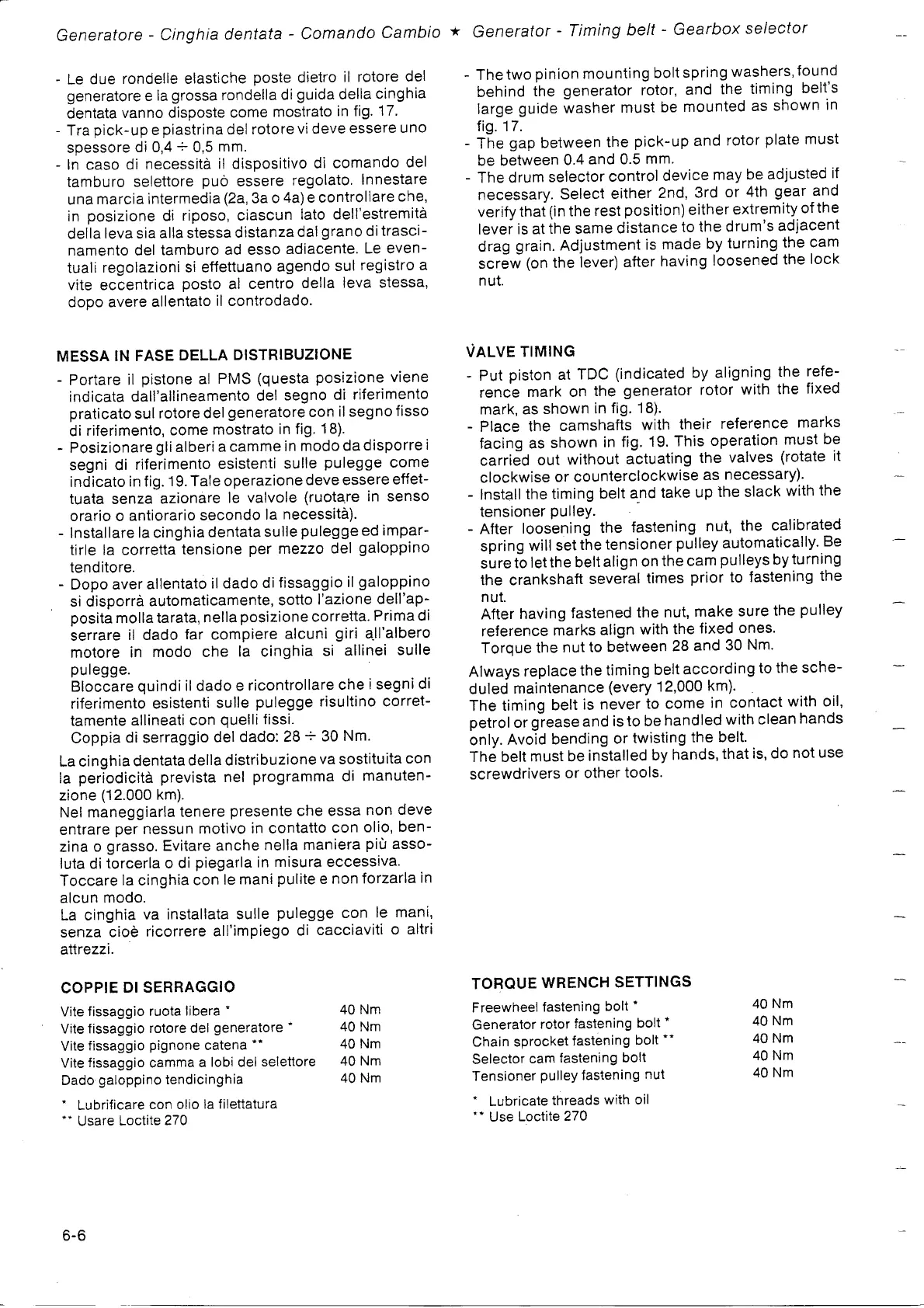 Gilera 350 - Valve Timing; Torque Wrench Settings