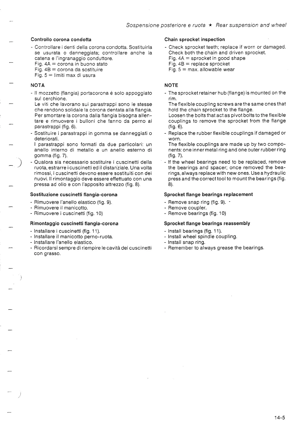 Gilera 600 - Chain Sprocket Inspection; Sprocket Flange Bearings Reassembly