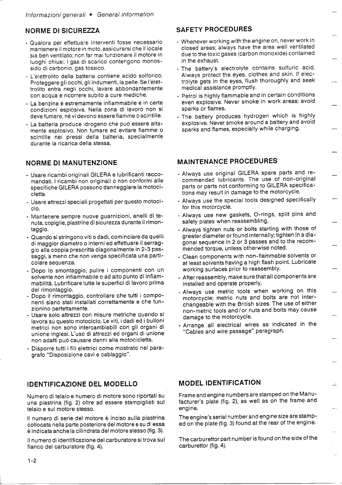 Gilera 600 - Safety Procedures; Maintenance Procedures; Model Identification
