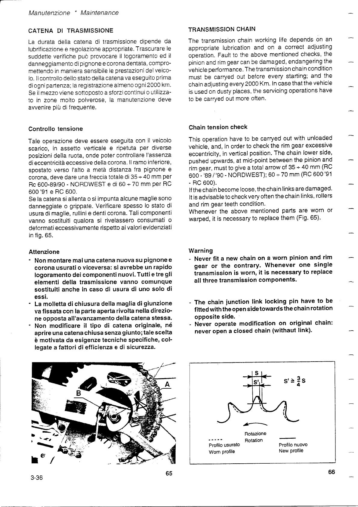 Gilera 600 - Transmission Chain; Chain Tension Check