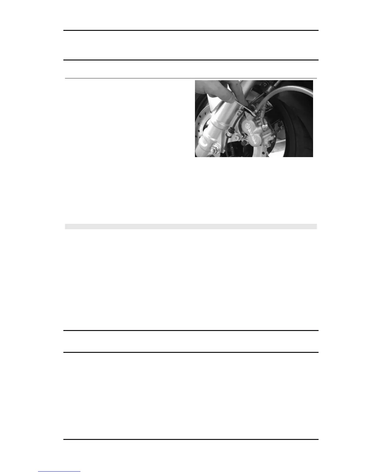 - Keeping the right-hand brake lever pulled, loosen the bleed screw to purge the air. Then tighten the