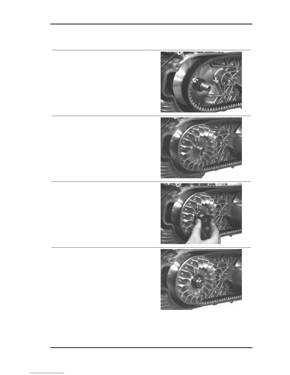 - Install the fixed driving half-pulley and check that