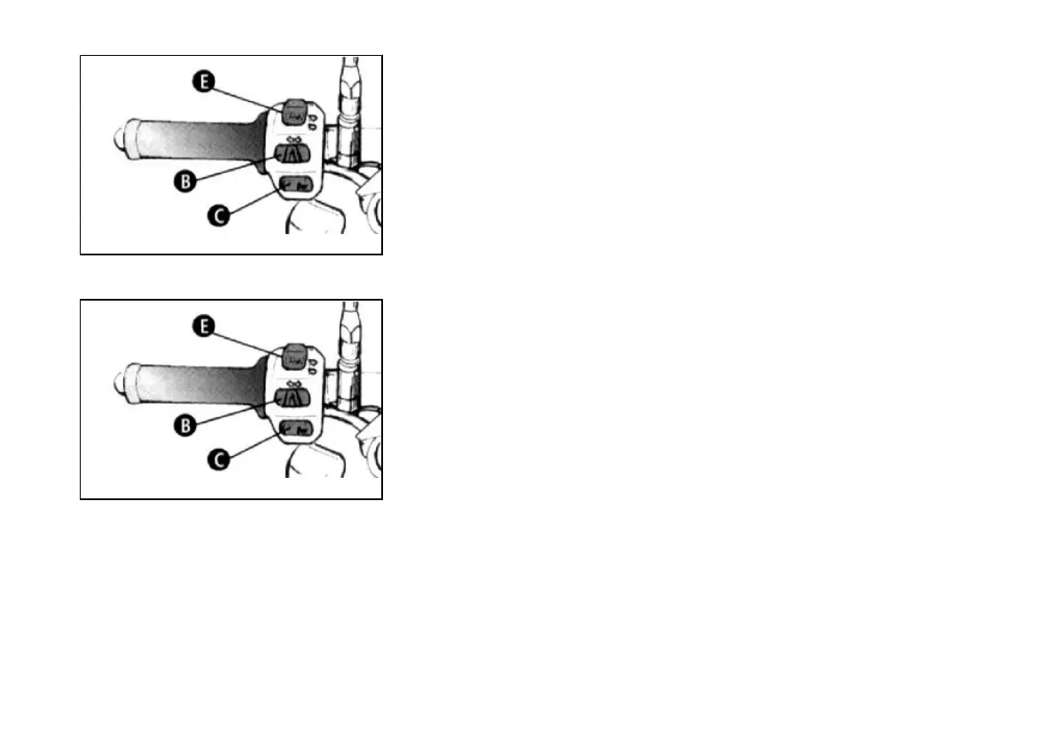 Press the button «E» to start the engine, after pulling one of the two brake levers
