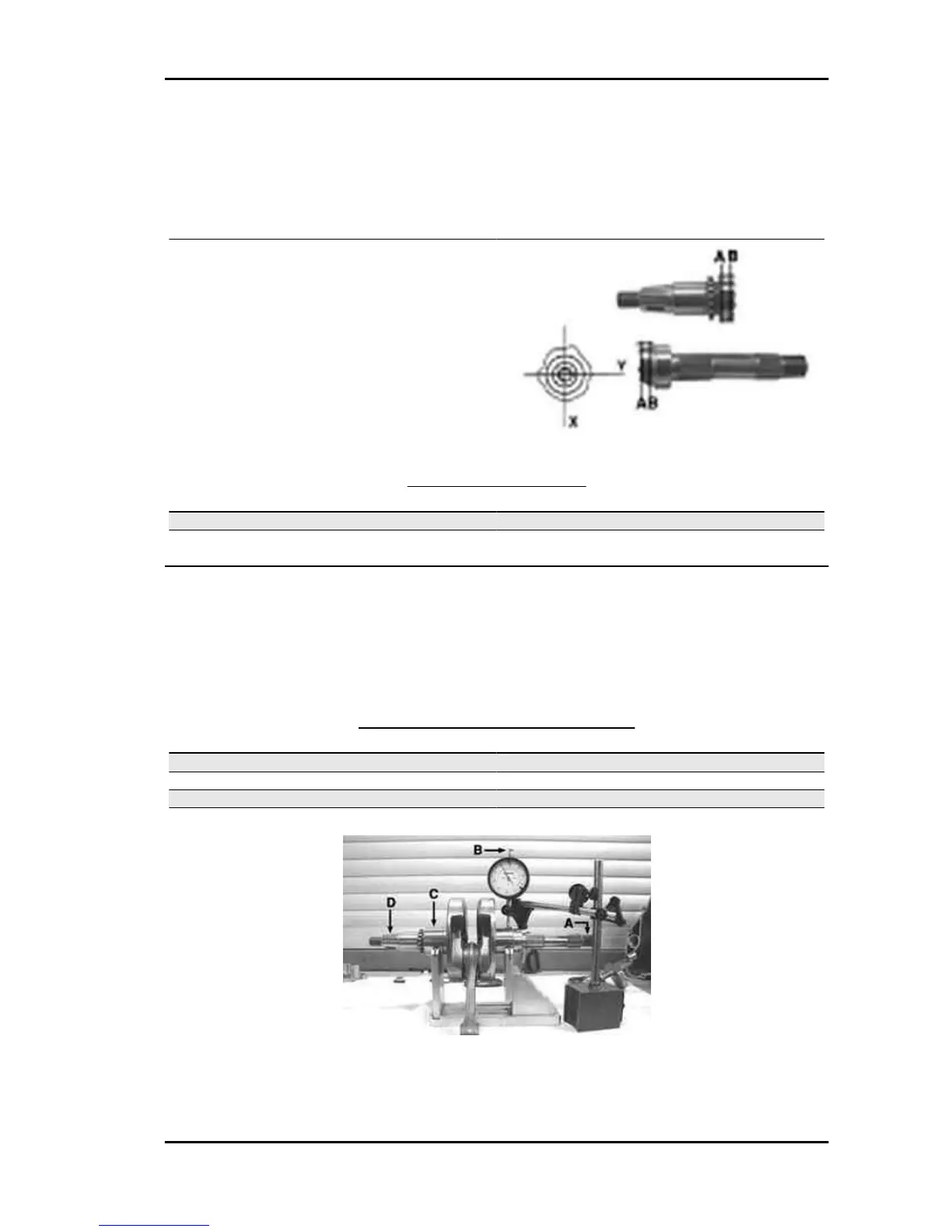 - Install the crankshaft on the support and measure the displacement at the 4 points shown in the figure.