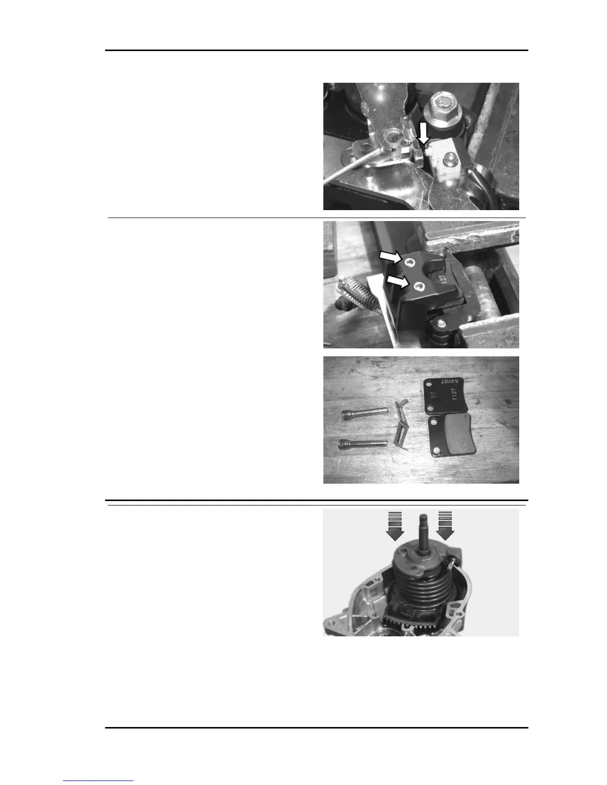 Unscrew the two pad pin screws, remove the pads