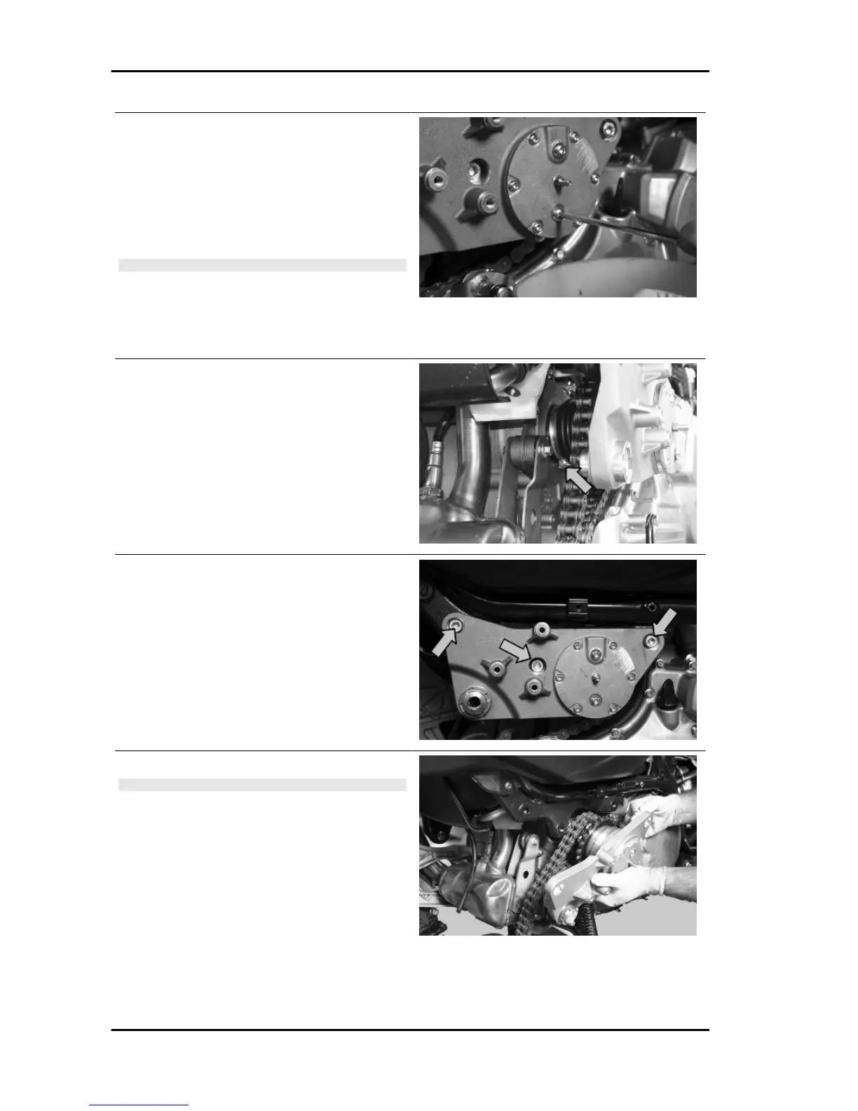 - Rimuovere il gruppo pignone completo di catena.