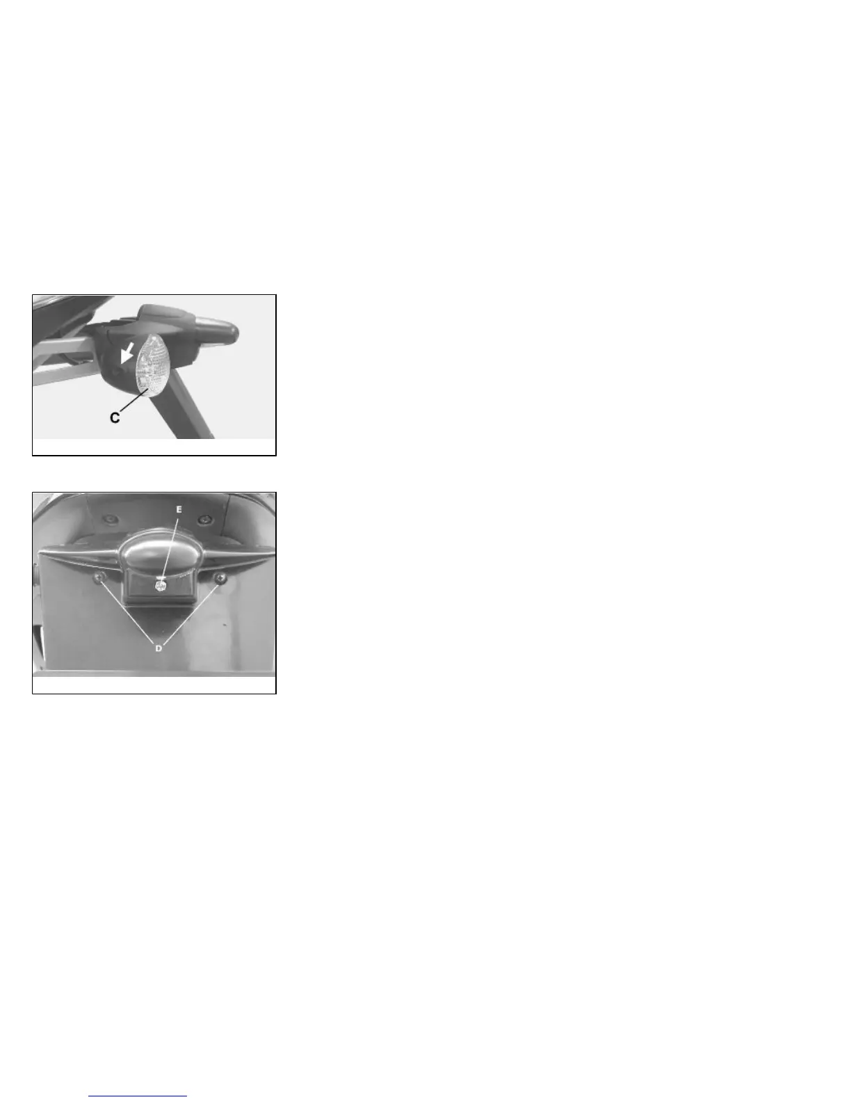 screw «E» from behind the mudguard. Remove the bulb socket.