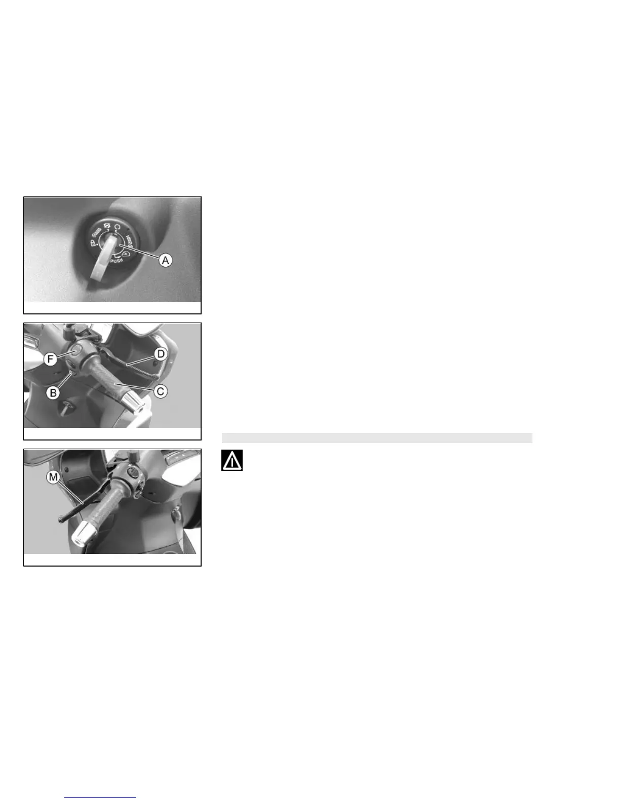 the rear brake lever «M» to actuate the specific start-up enabling switch