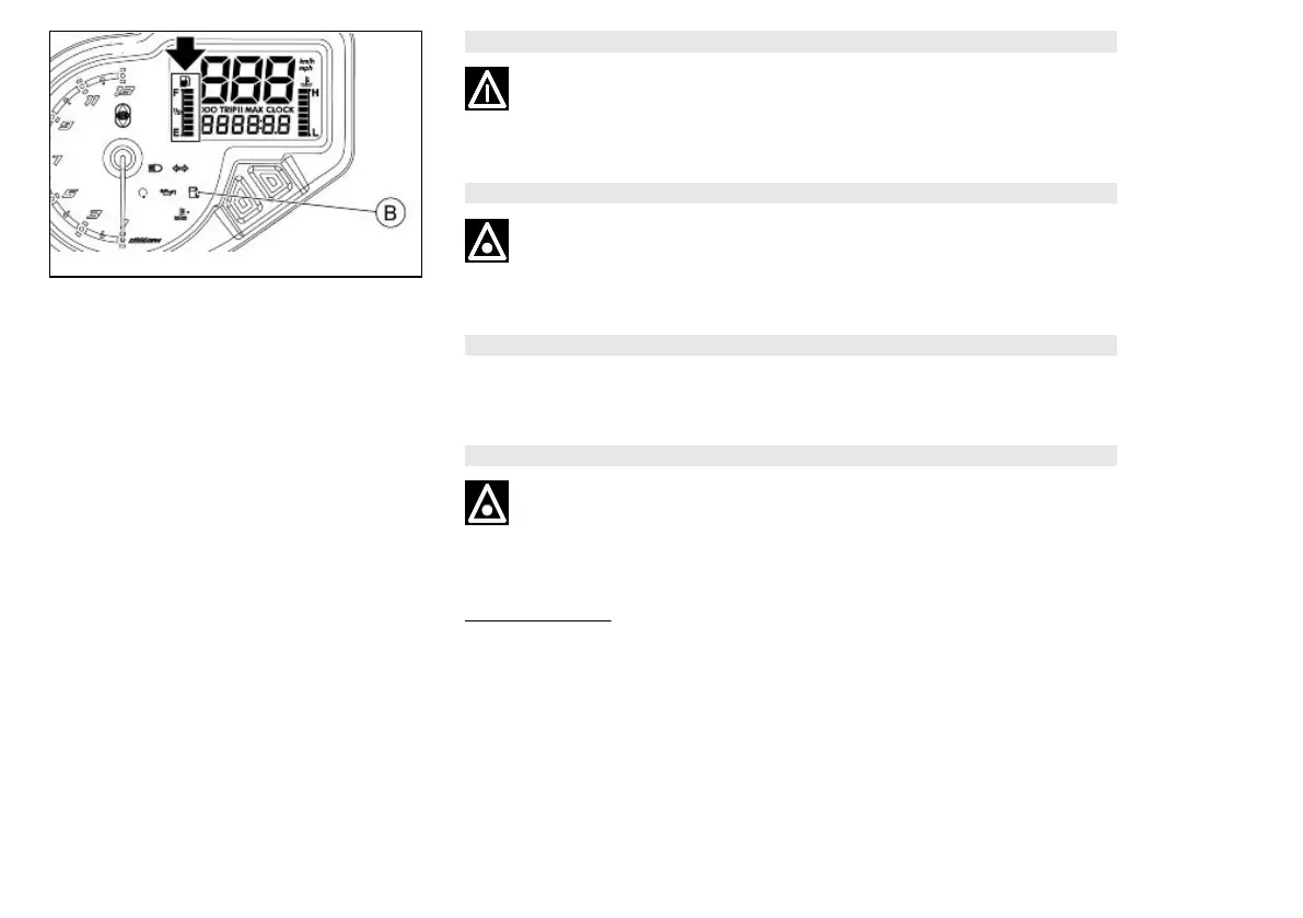 DO NOT RIDE WITH THE FUEL TANK ALMOST EMPTY, LACK OF FUEL CAN