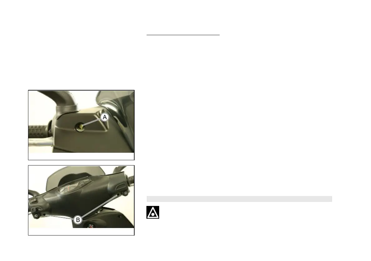 below. Remove the front handlebar cover, remove the two screws «B», unscrew the
