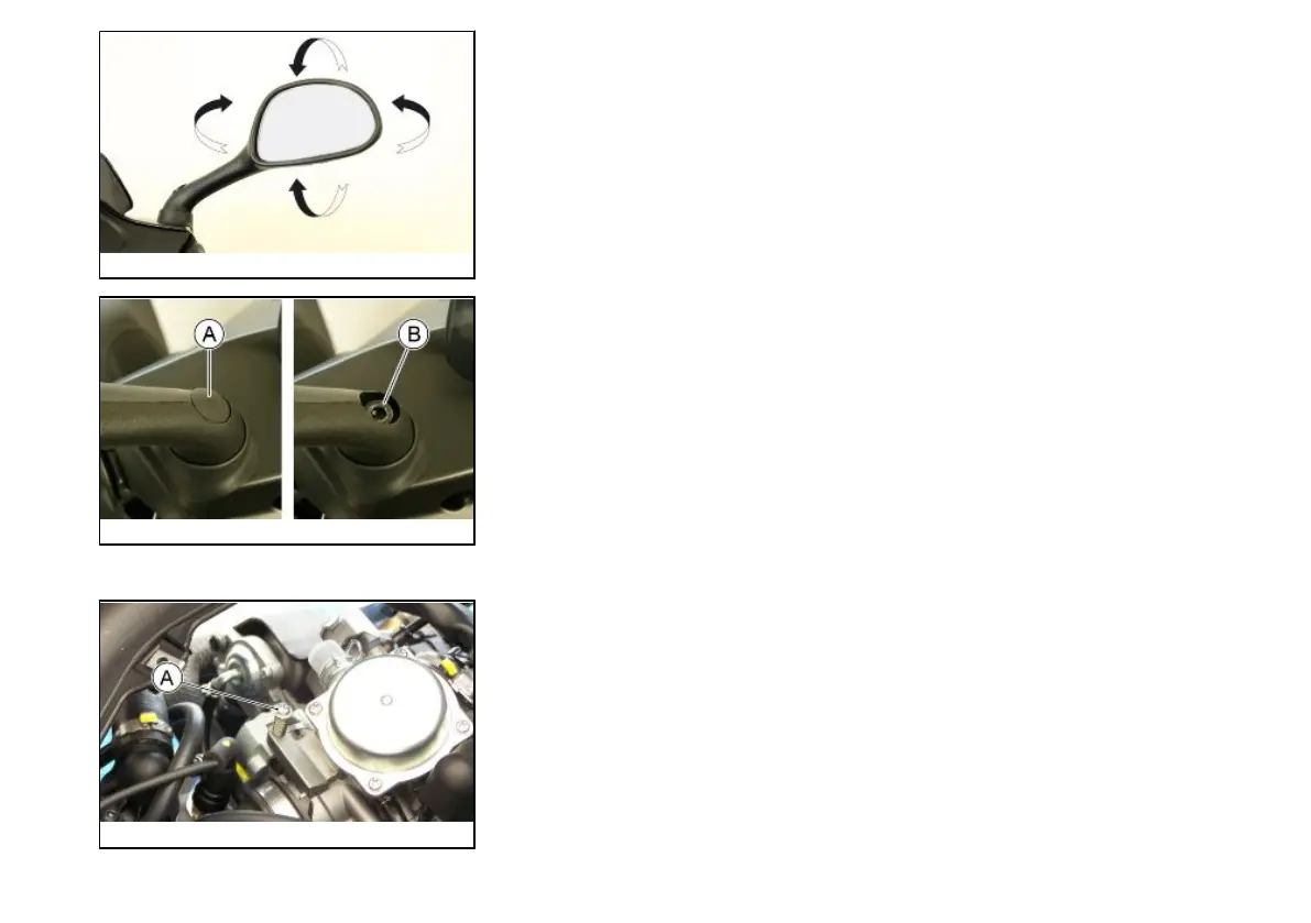To adjust the mirror angle, remove the rubber cap «A», loosen the screw «B» located