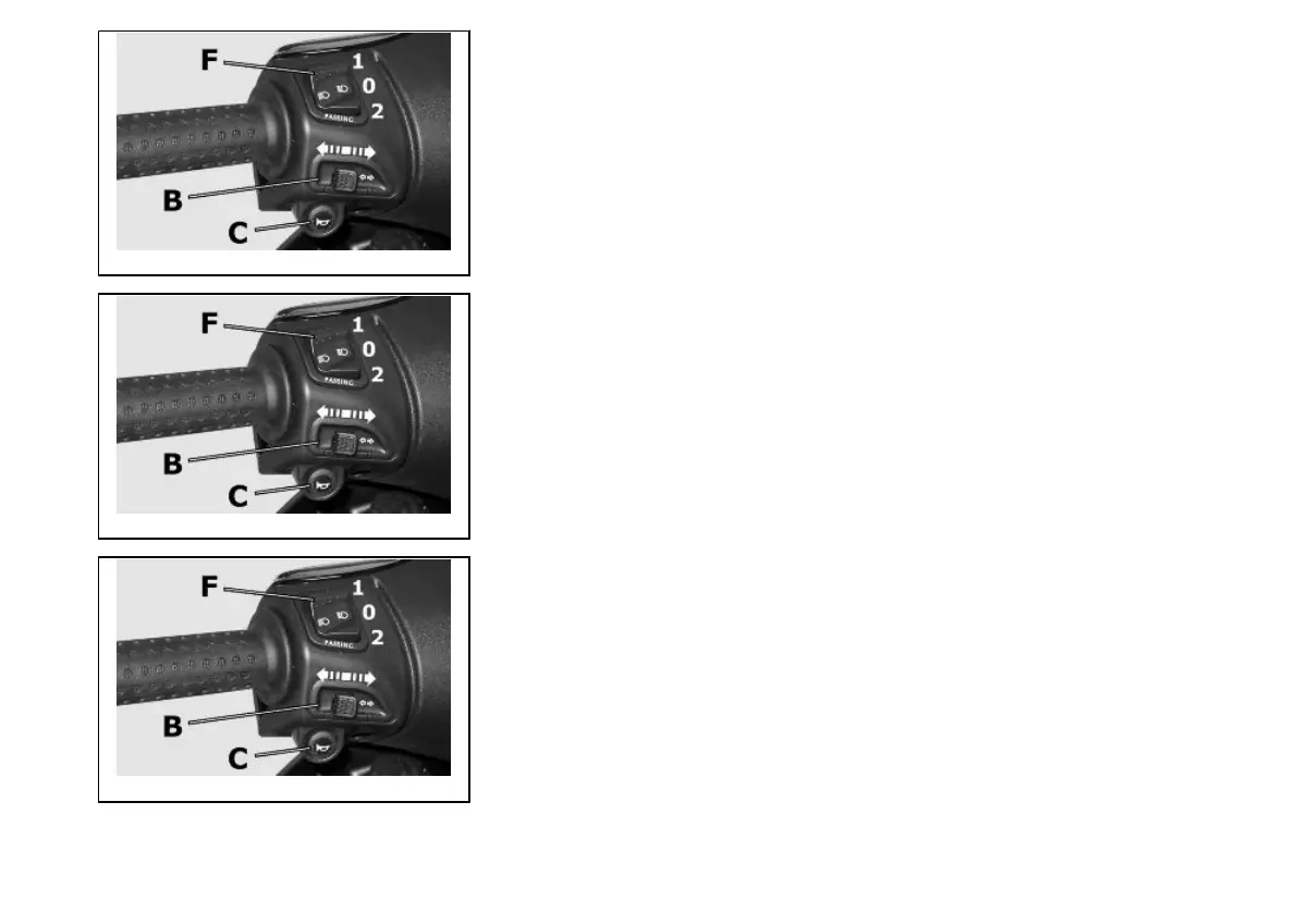 To set the left turn indicators flashing, move lever «B» to the left; to set the right turn