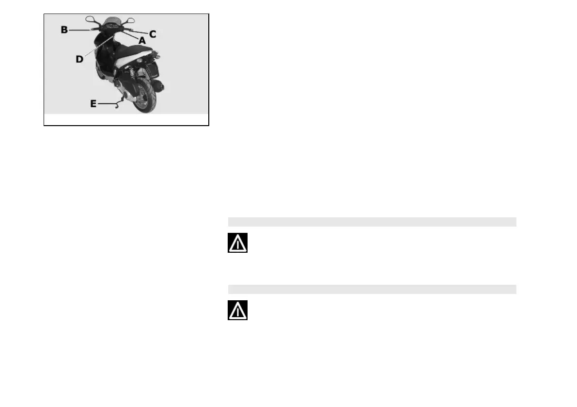 1: Put the scooter on its stand "E"; check that the rear wheel is off the ground.