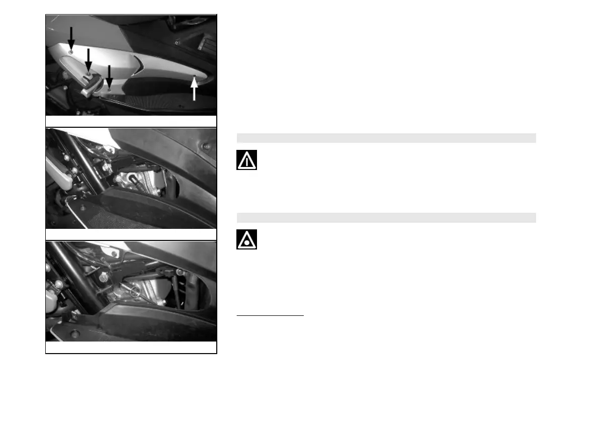 When refitting, use caution while inserting the passenger footrest in its hole in side-