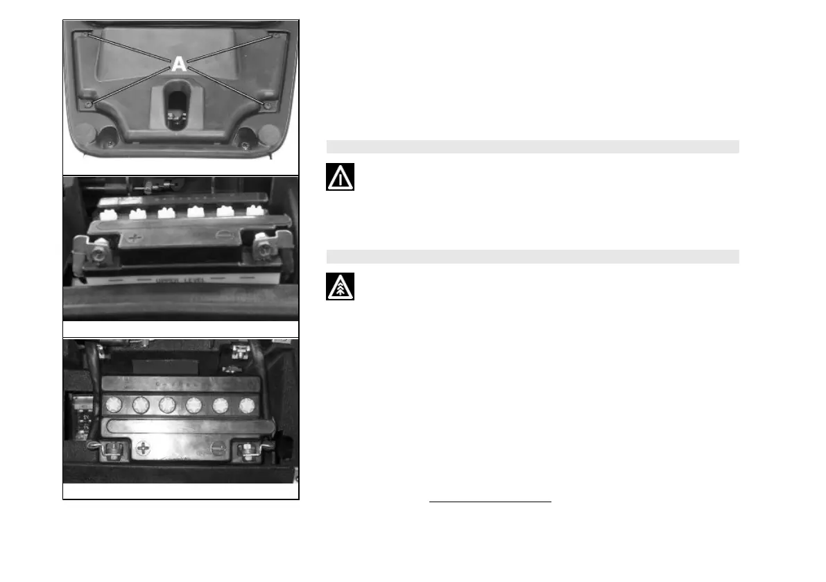 The saddle should be lifted in order to reach the battery. Loosen the four clamping