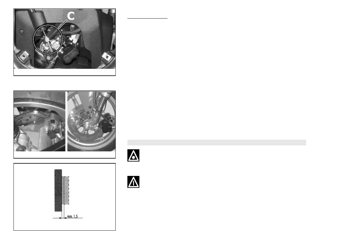 CHECK THE BRAKE PADS REGULARLY (EVERY 5000 KM). IF THE THICKNESS