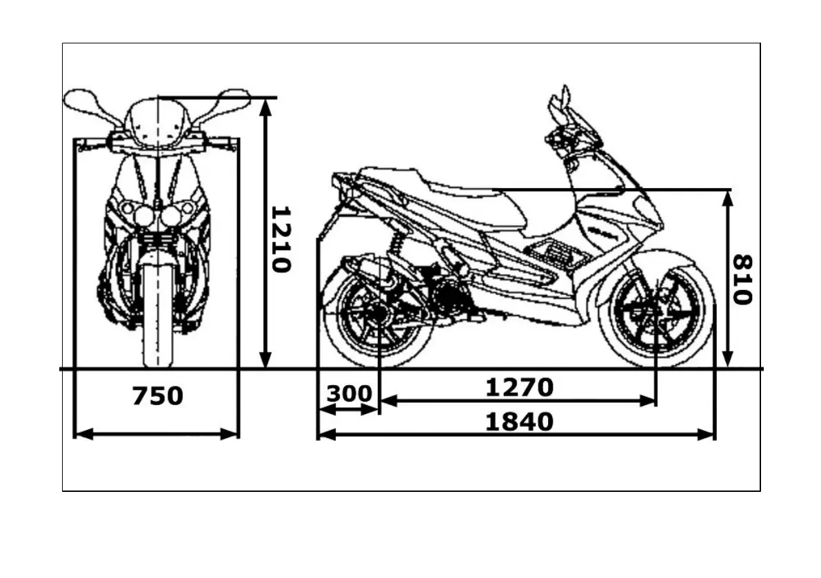 Gilera Runner 50 SP 2012 - Vehicle Dimensions Diagram
