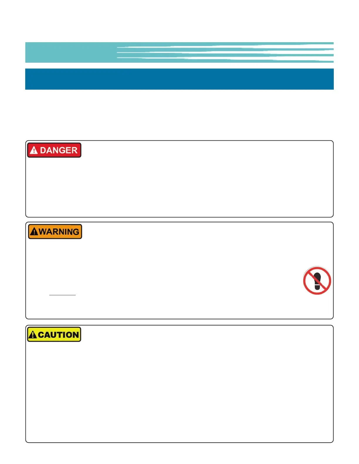 • Failure to comply with DANGER notices will result in serious injury, even death, damage to equipment or