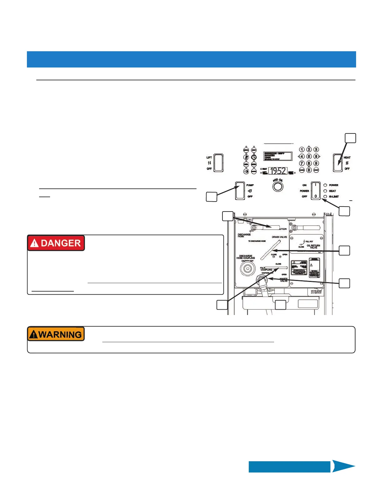 indicating that filter pan has emptied. Return Pump & Power switches to [OFF] position.