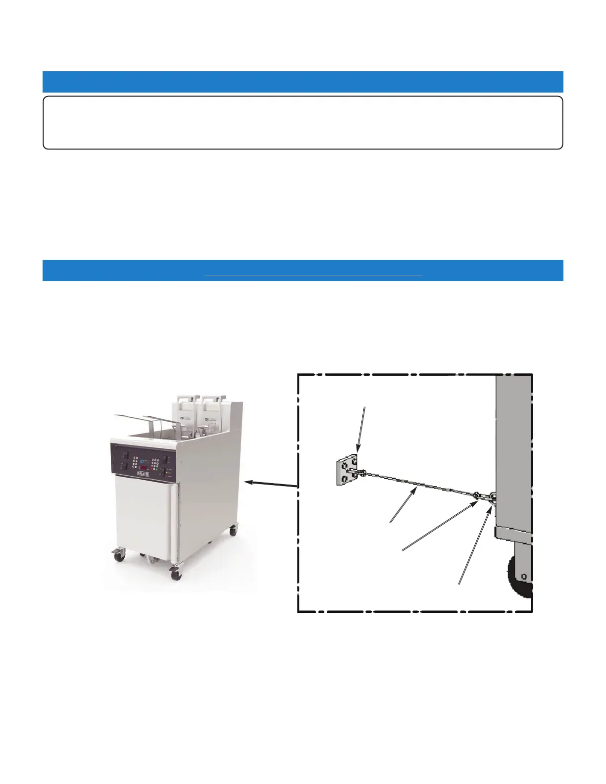 installed eye‐bolt(s) on the rear of the unit. A restraint may be required for each end of a banked fryer system.