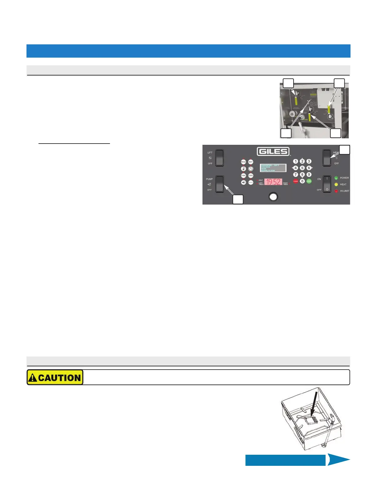 • Press the [CLEAR] key to return fryer to PREHEAT mode and place the Heat Switch ③ in the [HEAT] position to