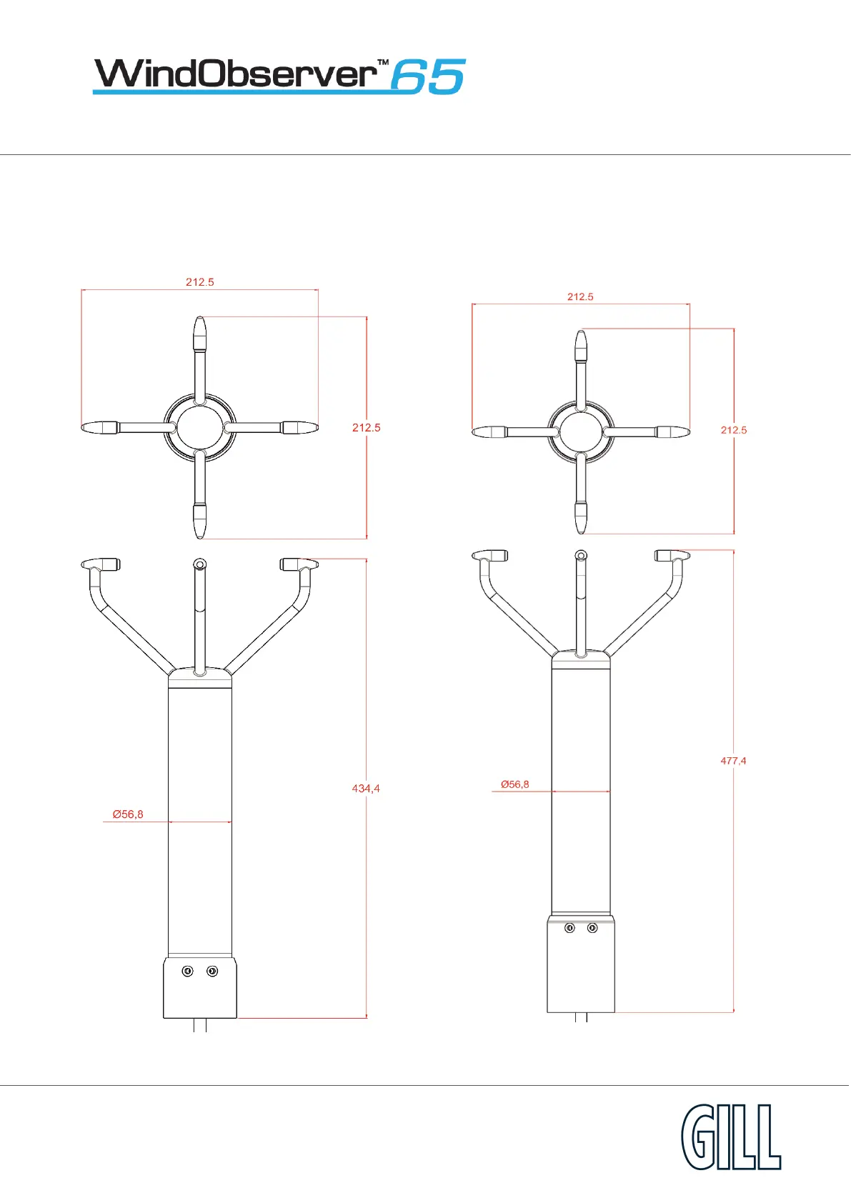 Figure 2b WindObserver 65 outline dimensions