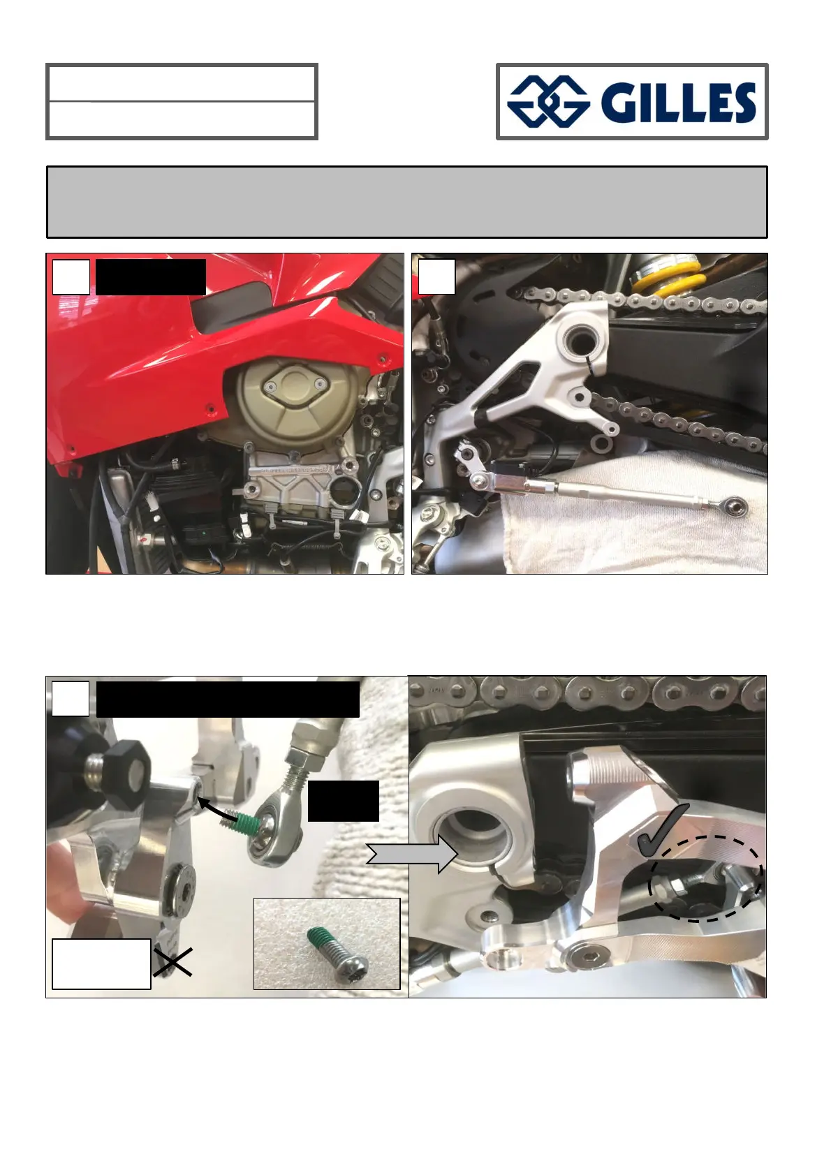 -Connect the gear shaft with the rearset. Choose the standard shifting (shown) or the reverse shifting (step F).