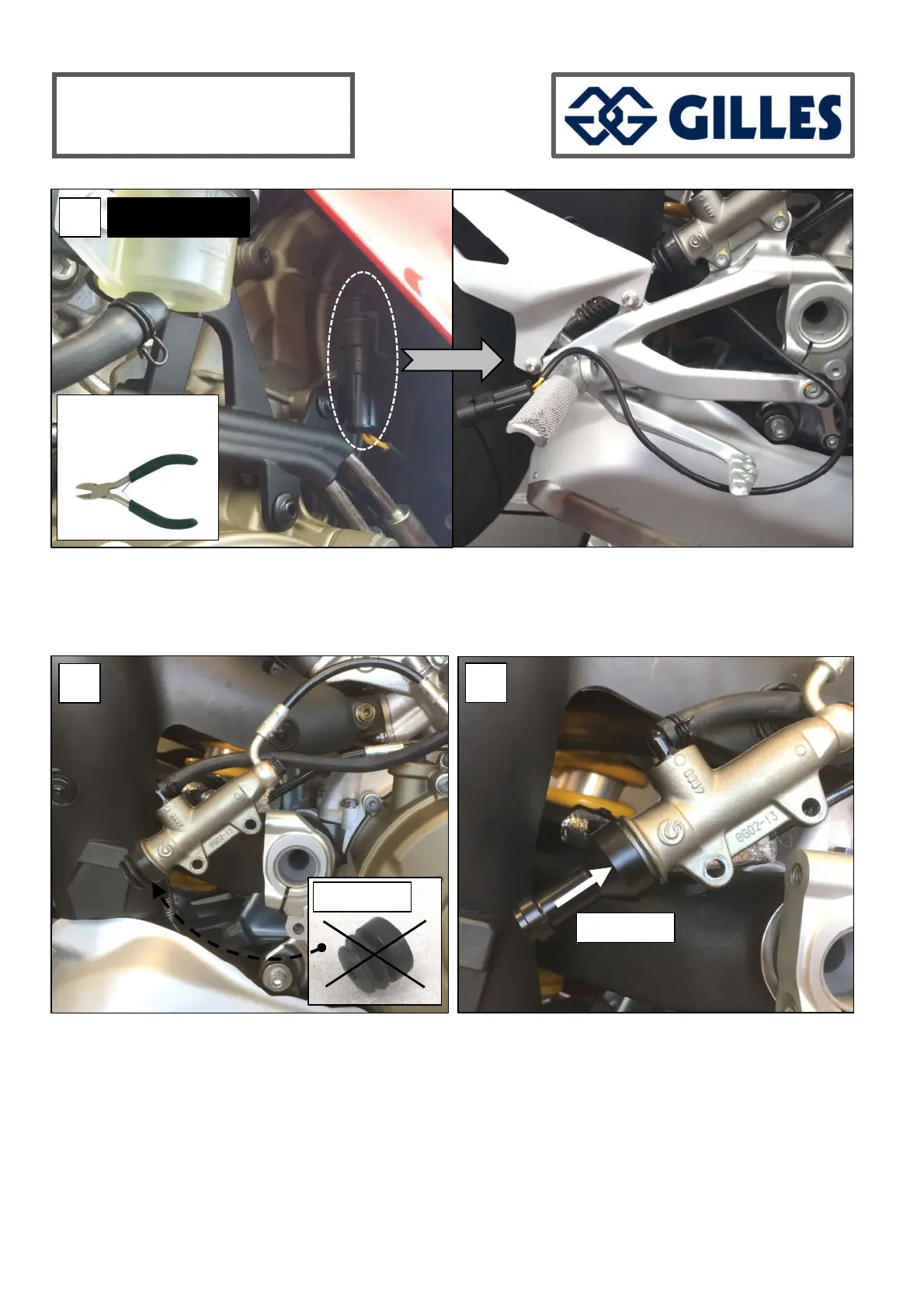-Detach the original rearset system and remove the original dust cover from the master brake cylinder.