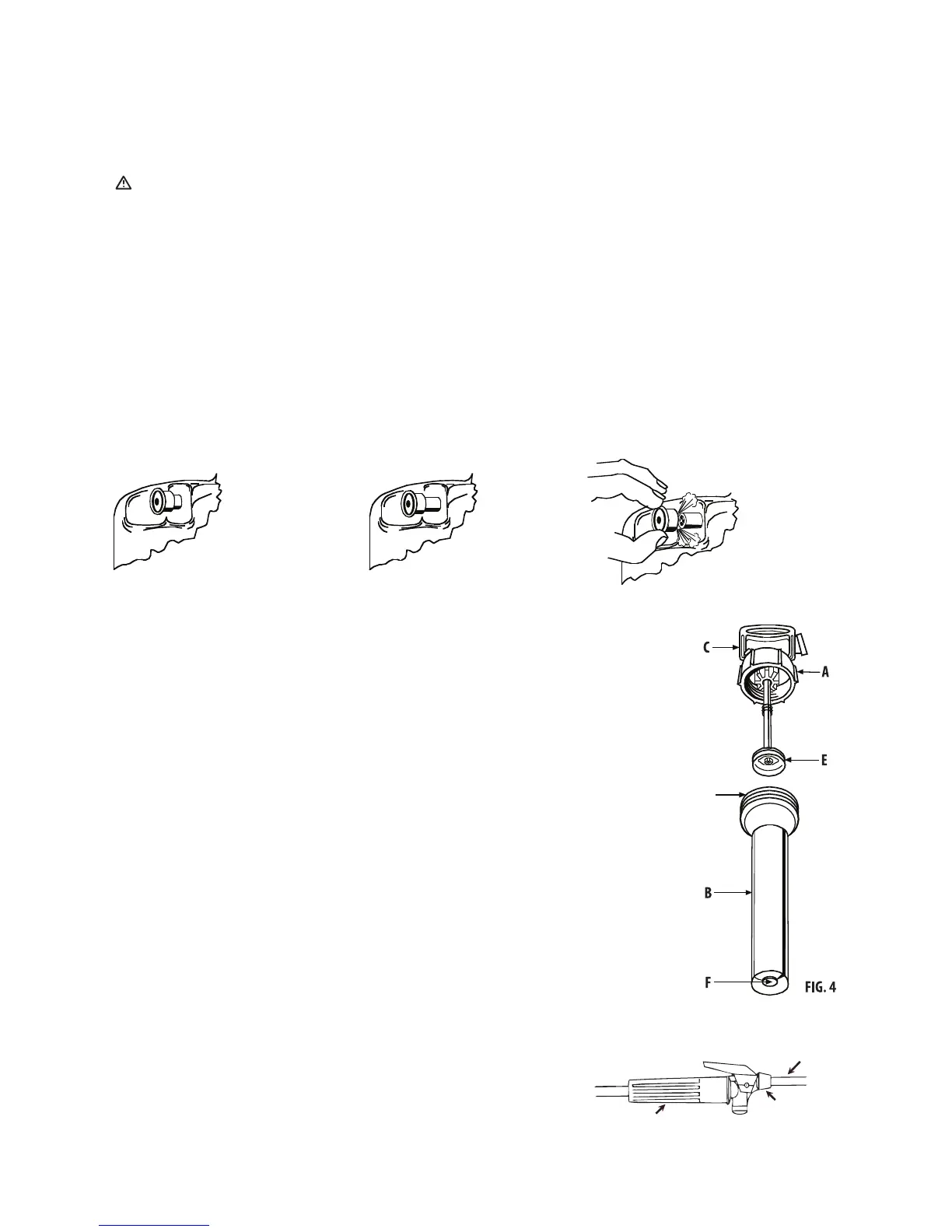 Do not loosen tip more than 2-3 threads (full turns). Loosening tip too far will result in cap flying