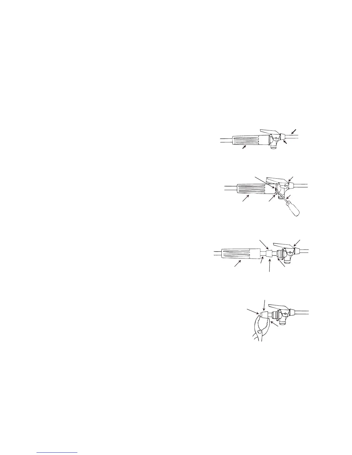 desprenda la manga con tenazas tal como se muestra y corte el resto de la manguera de la conexión