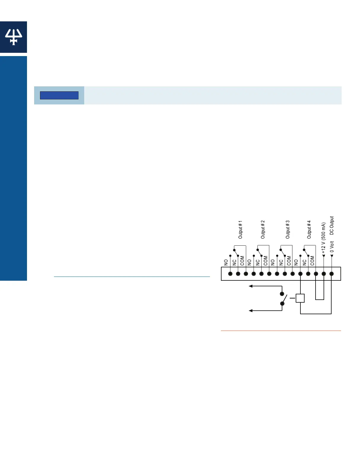 A 12 V (500 mA) DC supply is available at the right-most pair of pins of the left-hand terminal.