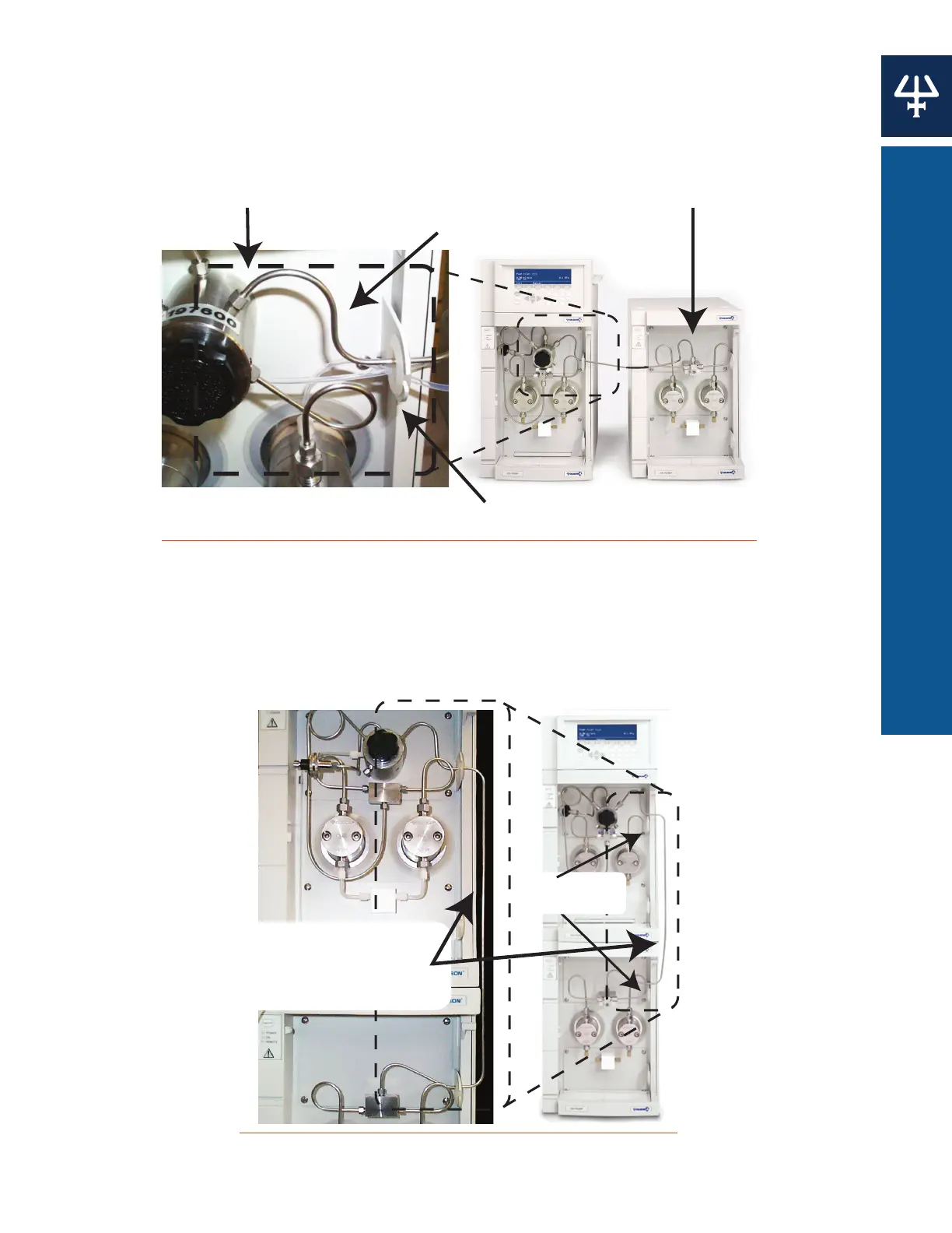 Stack the 333 Pump on top of the 334 Pump to conserve bench space. The tubing ports on