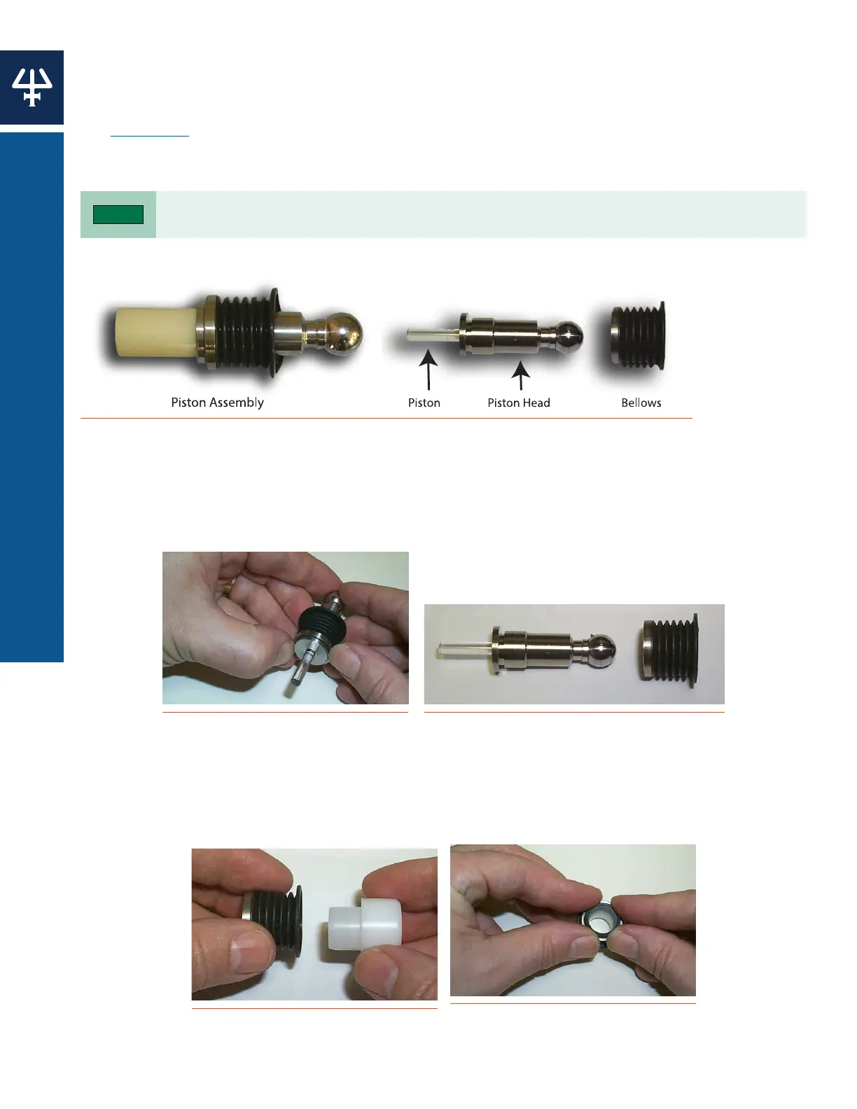 Although piston shafts vary in size, the procedure for bellows replacement is identical.