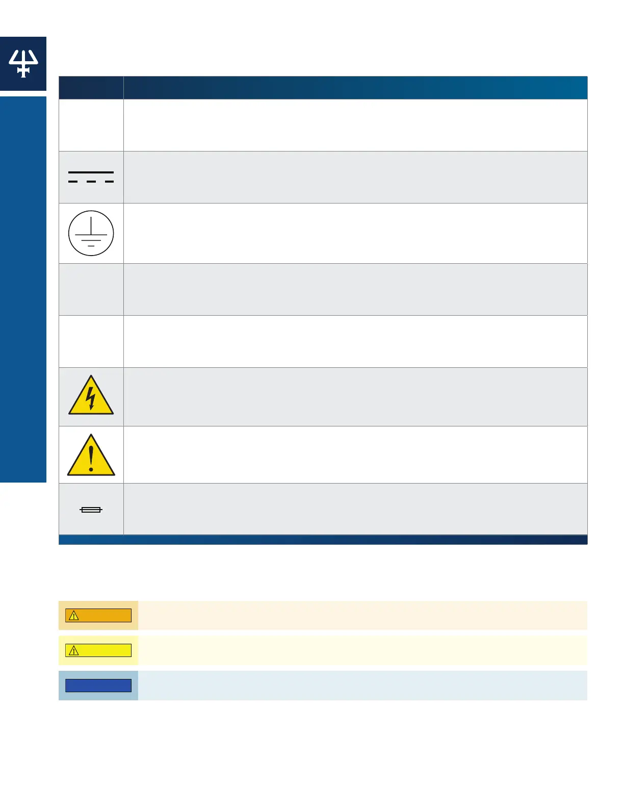 The following electronic and hazard symbols may appear on the instrument: