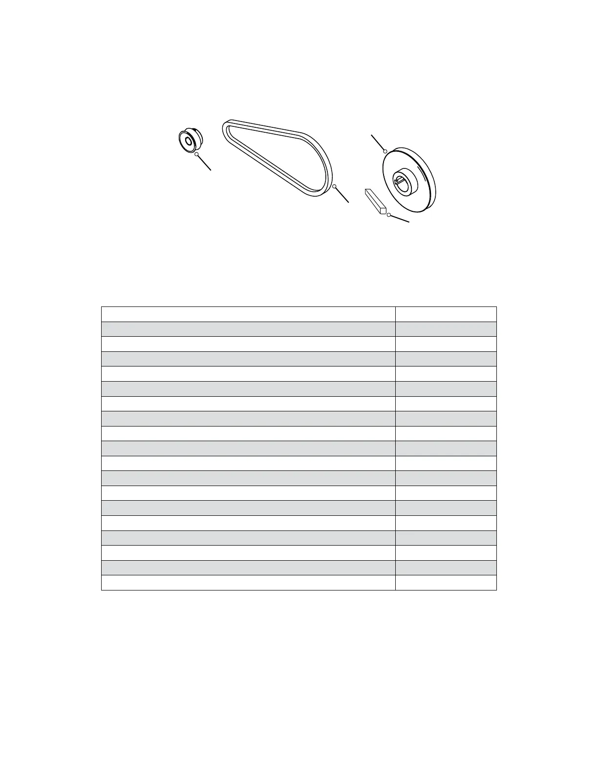 Several sizes of pulleys and V-belts are currently in use� Specify serial number, belt length, and pulley