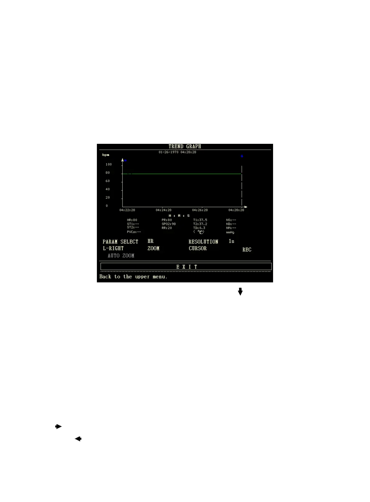 Pick RESOLUTION item by using the cursor, choose 1 s/5 s for 1-hour trend graph and 1min/5 min/10 min for