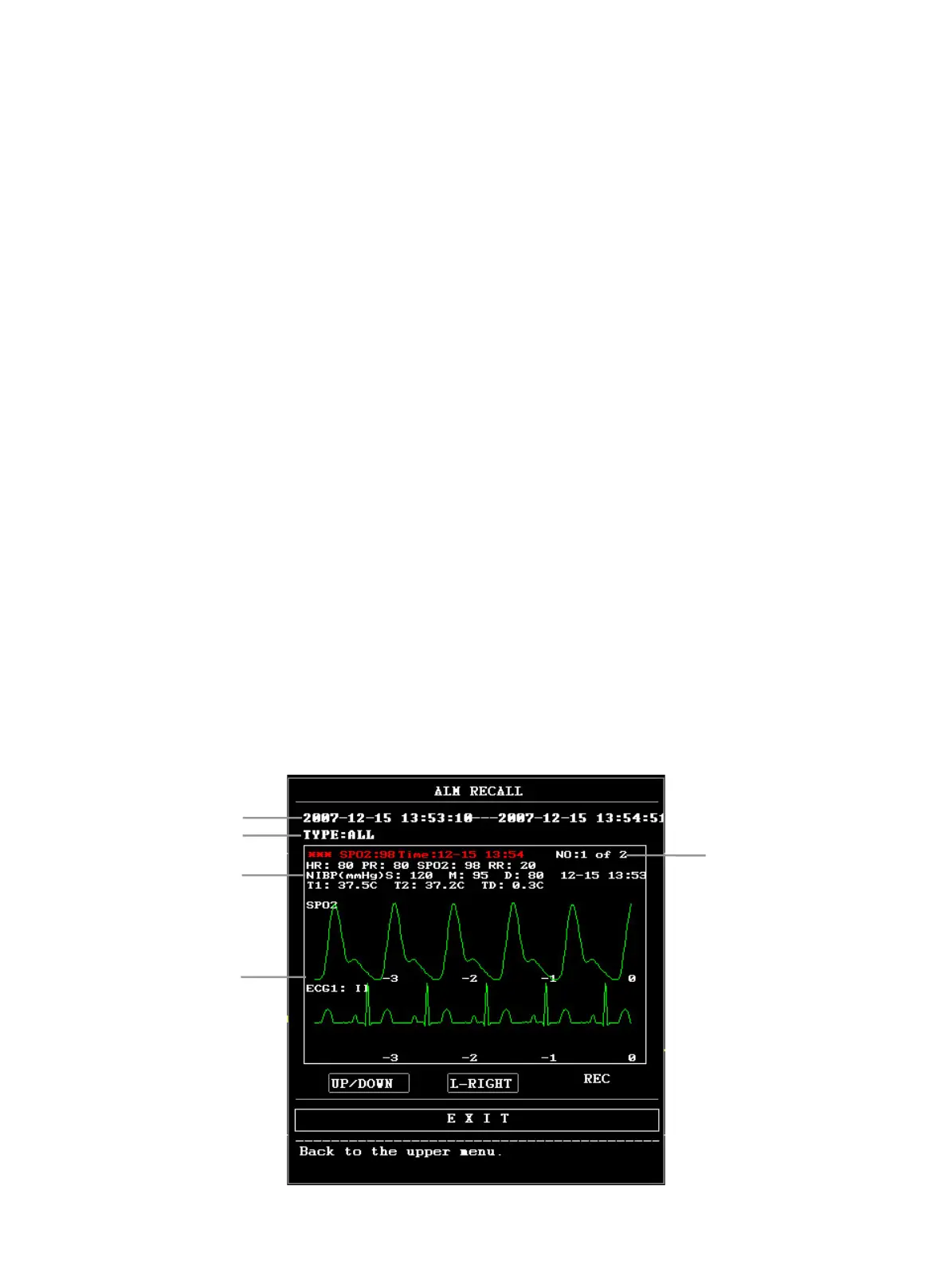 view the earlier or later data. Pick REC to print out all measurement data of NIBP RECALL.