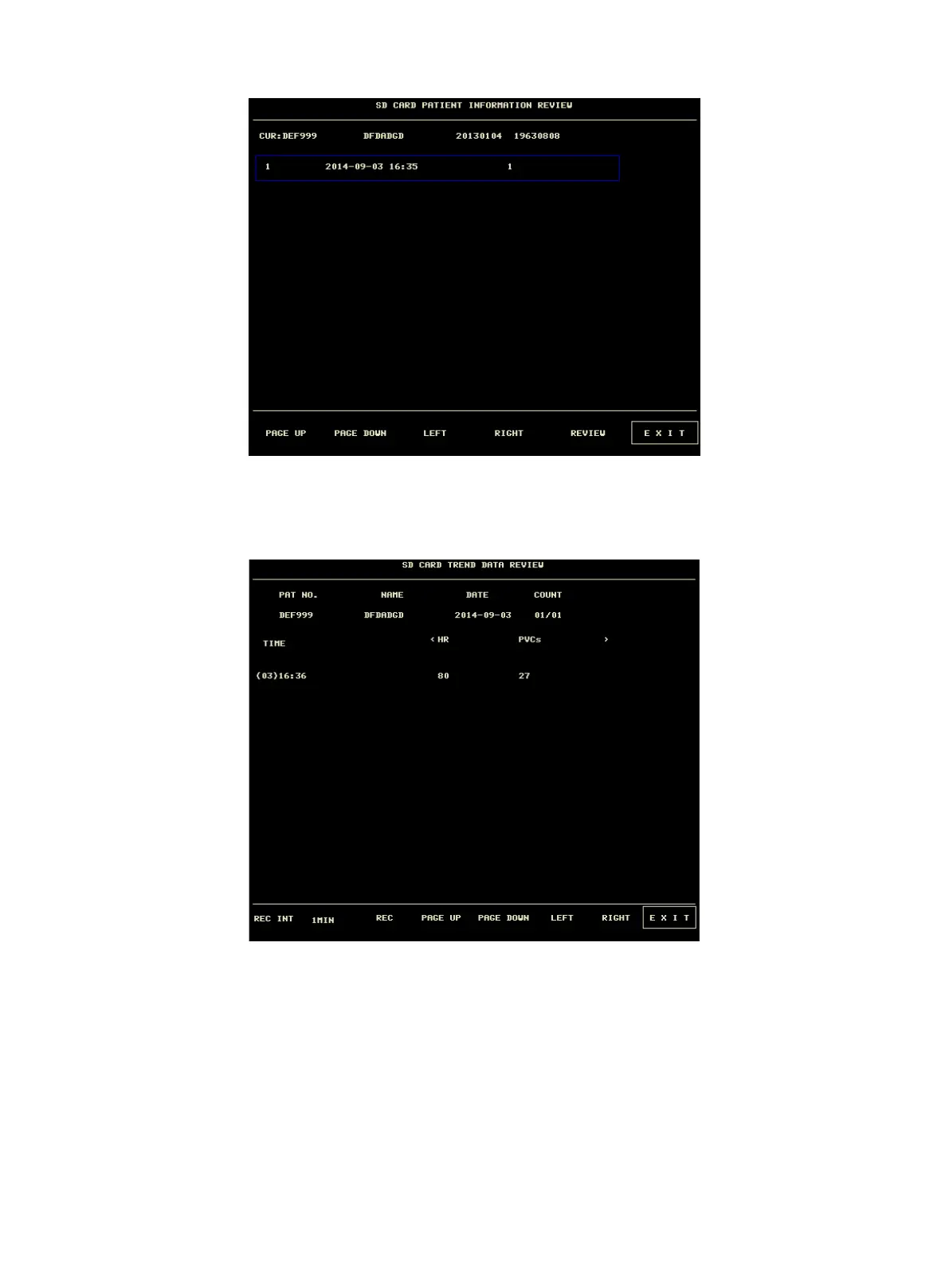 u Page UP/ PAGE DOWN: to view trend data of different time.