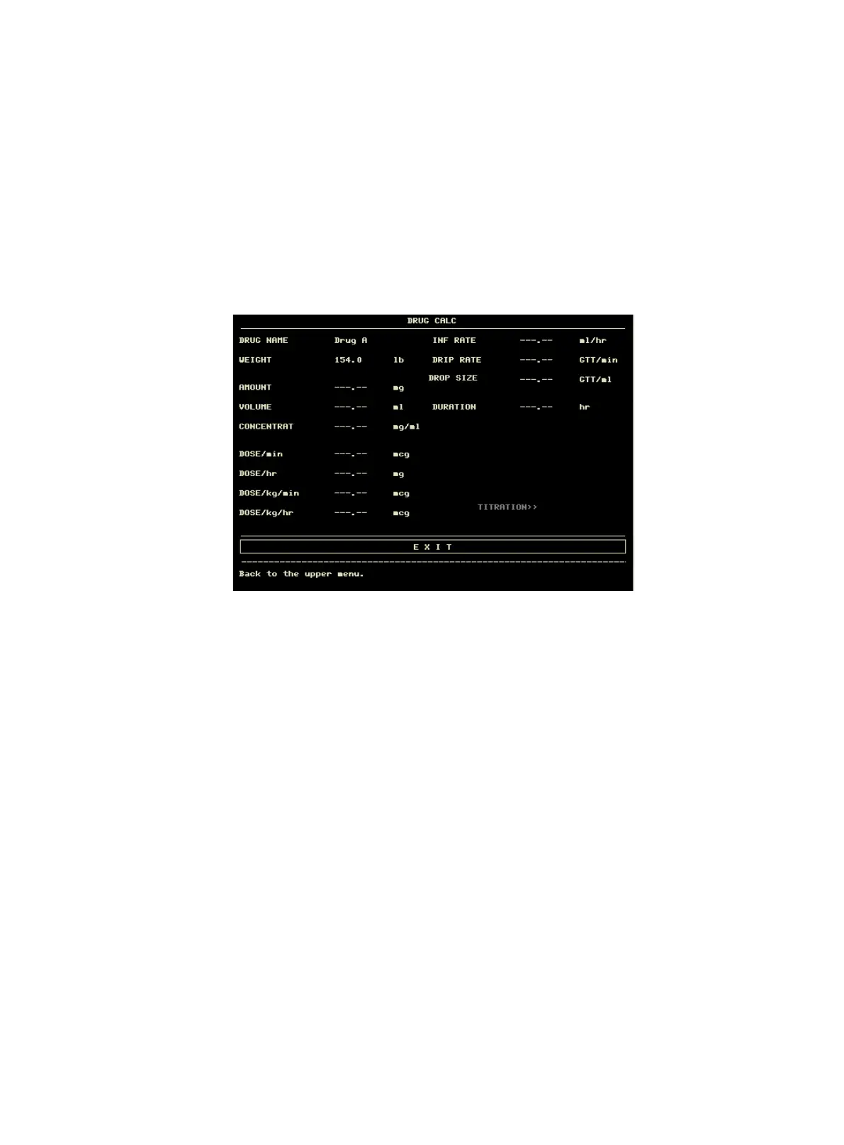 Select "DRUG CALC" in SYSTEM MENU, the following interface will appear: